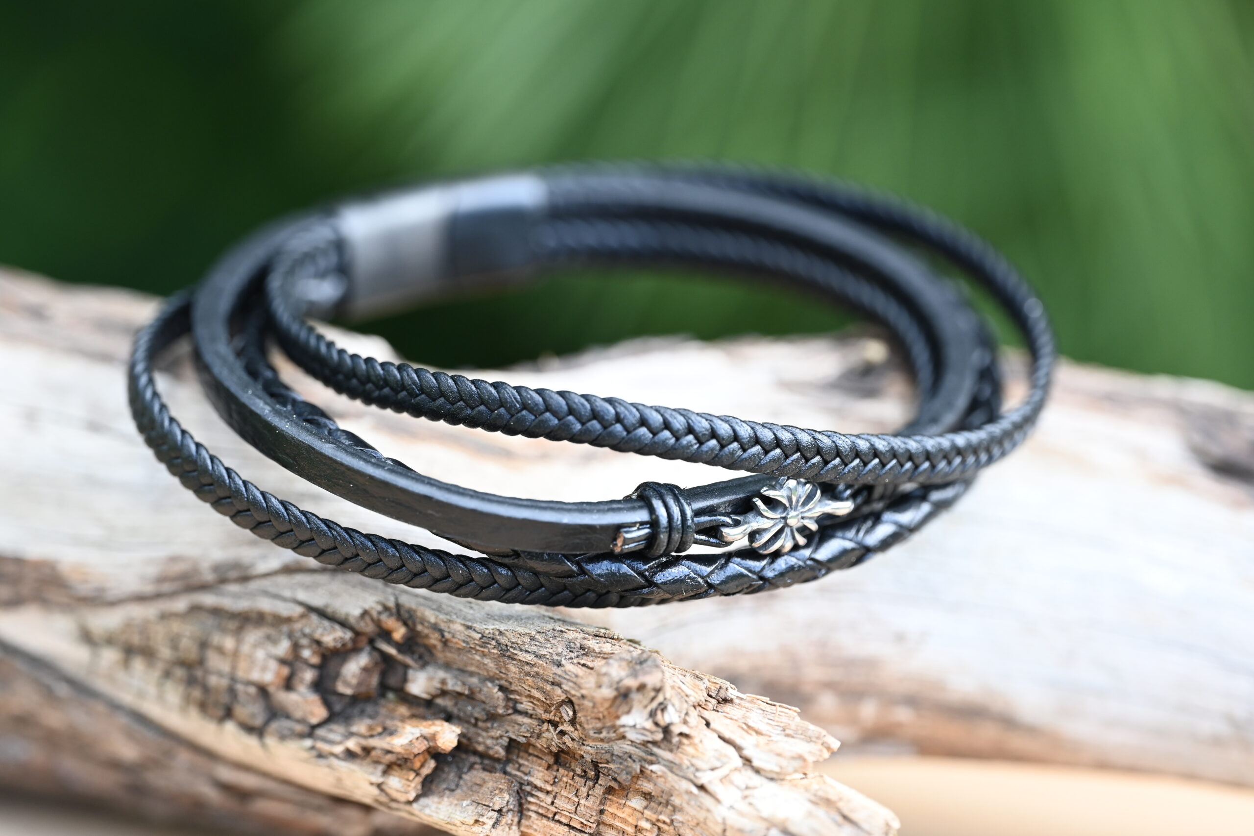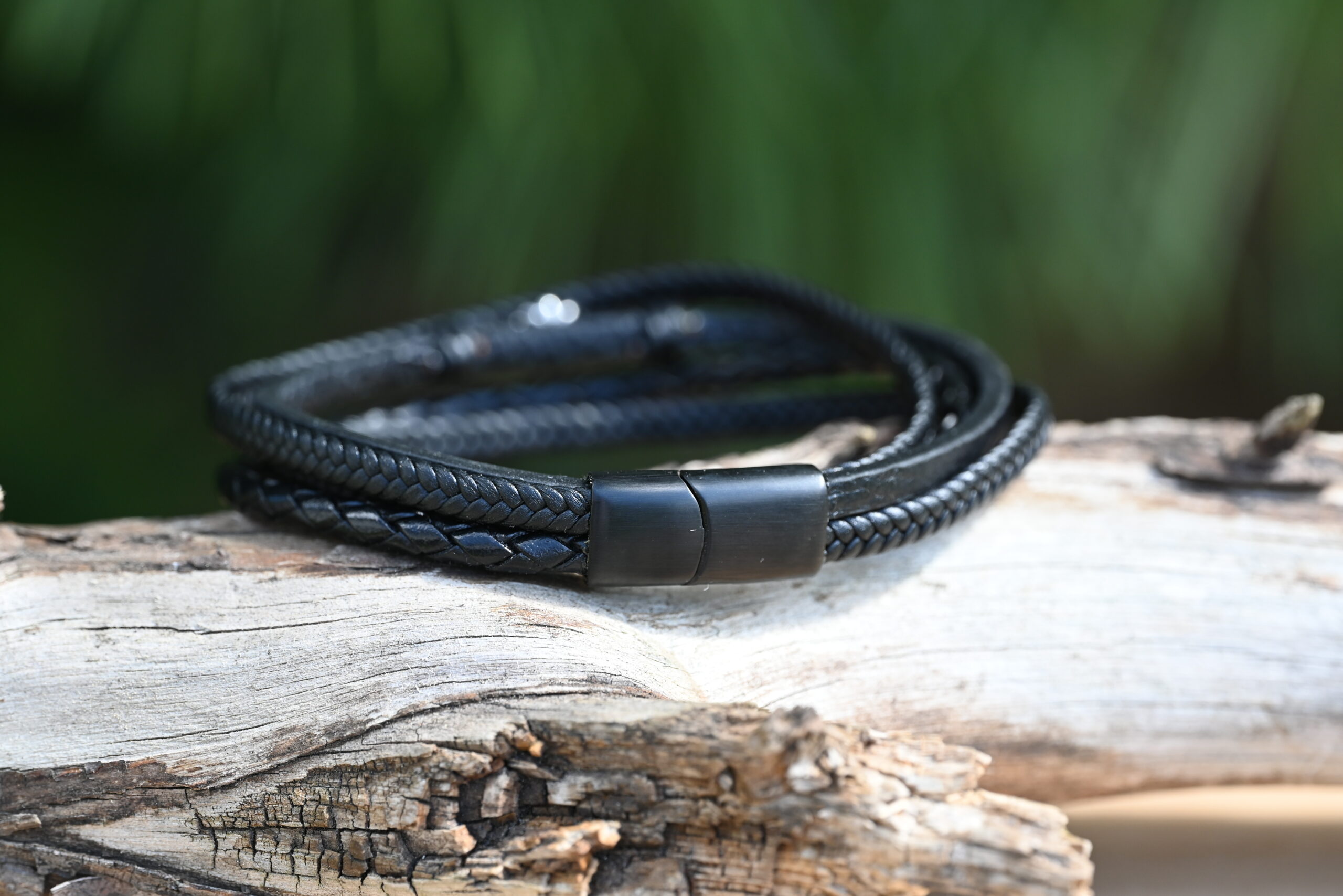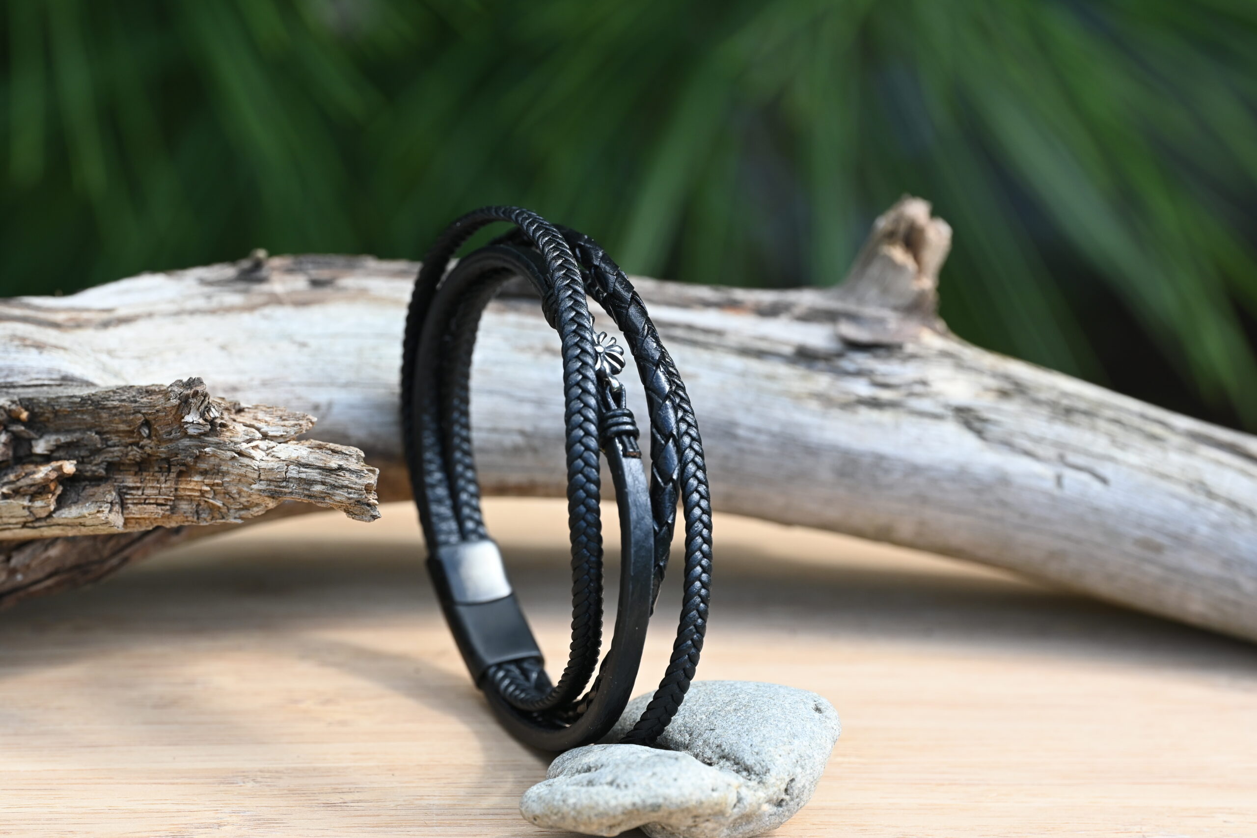 Meeste käevõru punutud nahaga ja tugeva roostevabast terasest kinnitusega. Vastupidav, niiskuskindel ning sobib ideaalselt igapäevaseks kandmiseks.