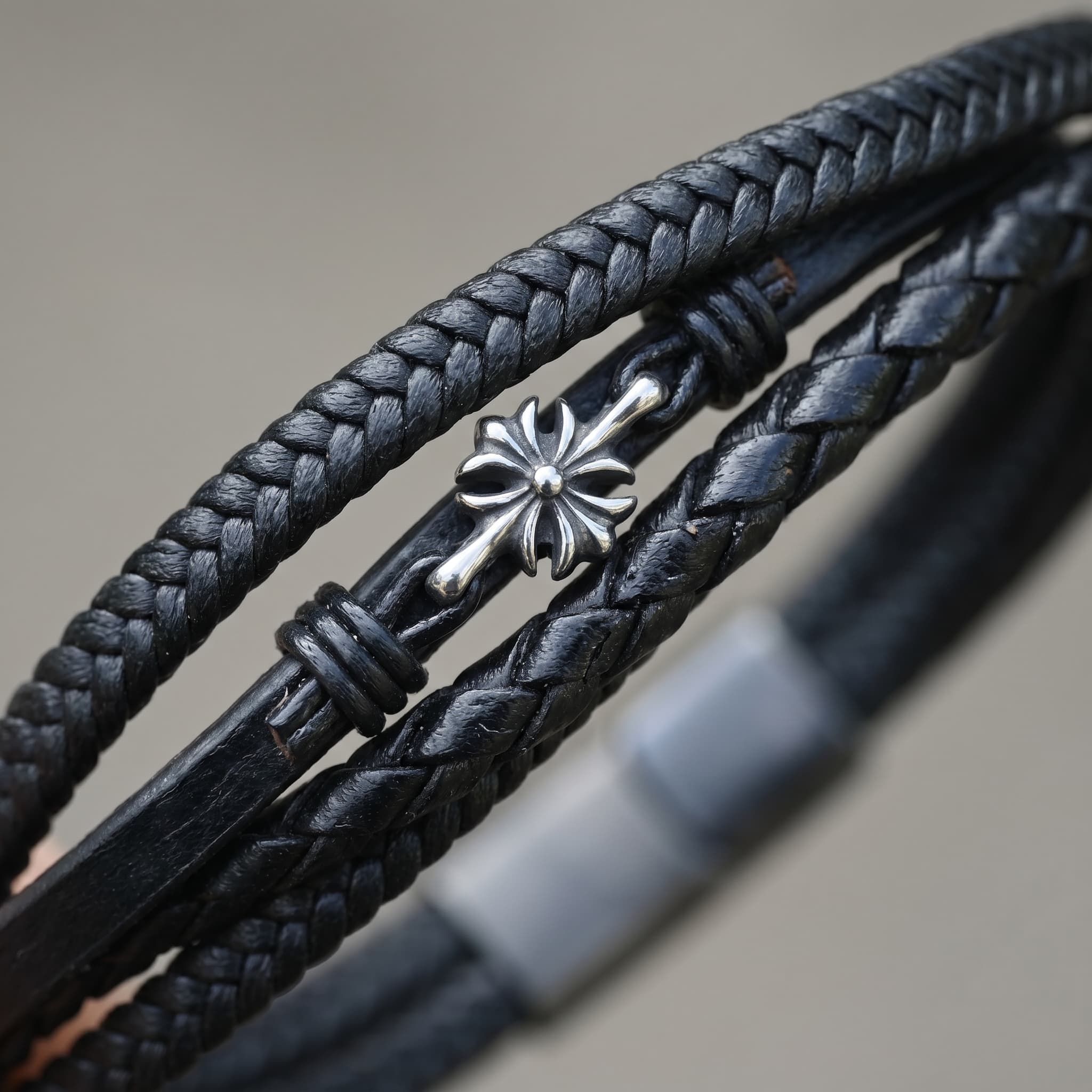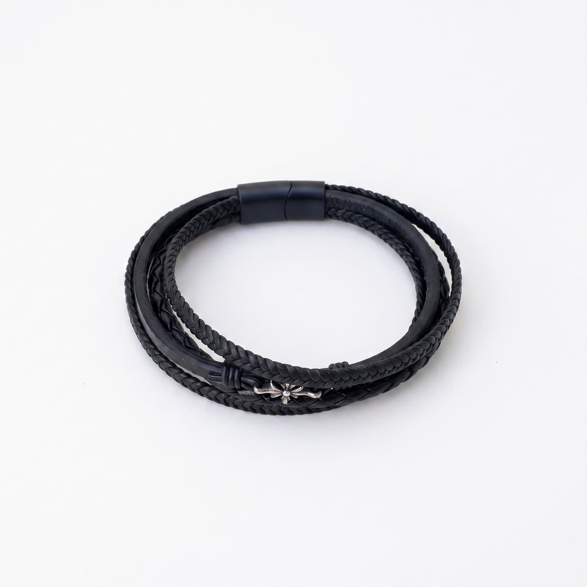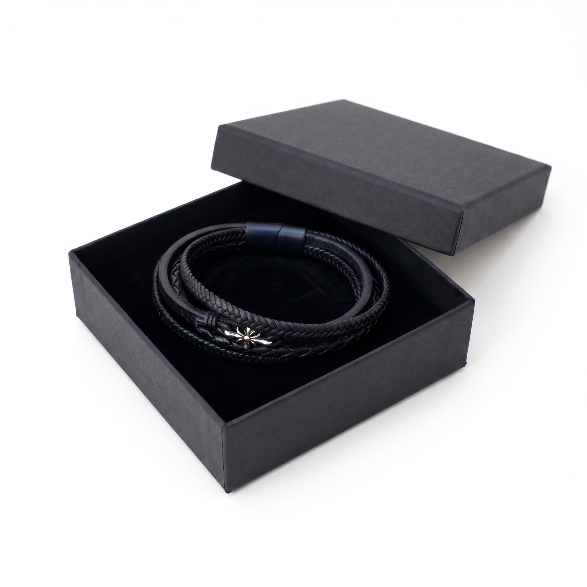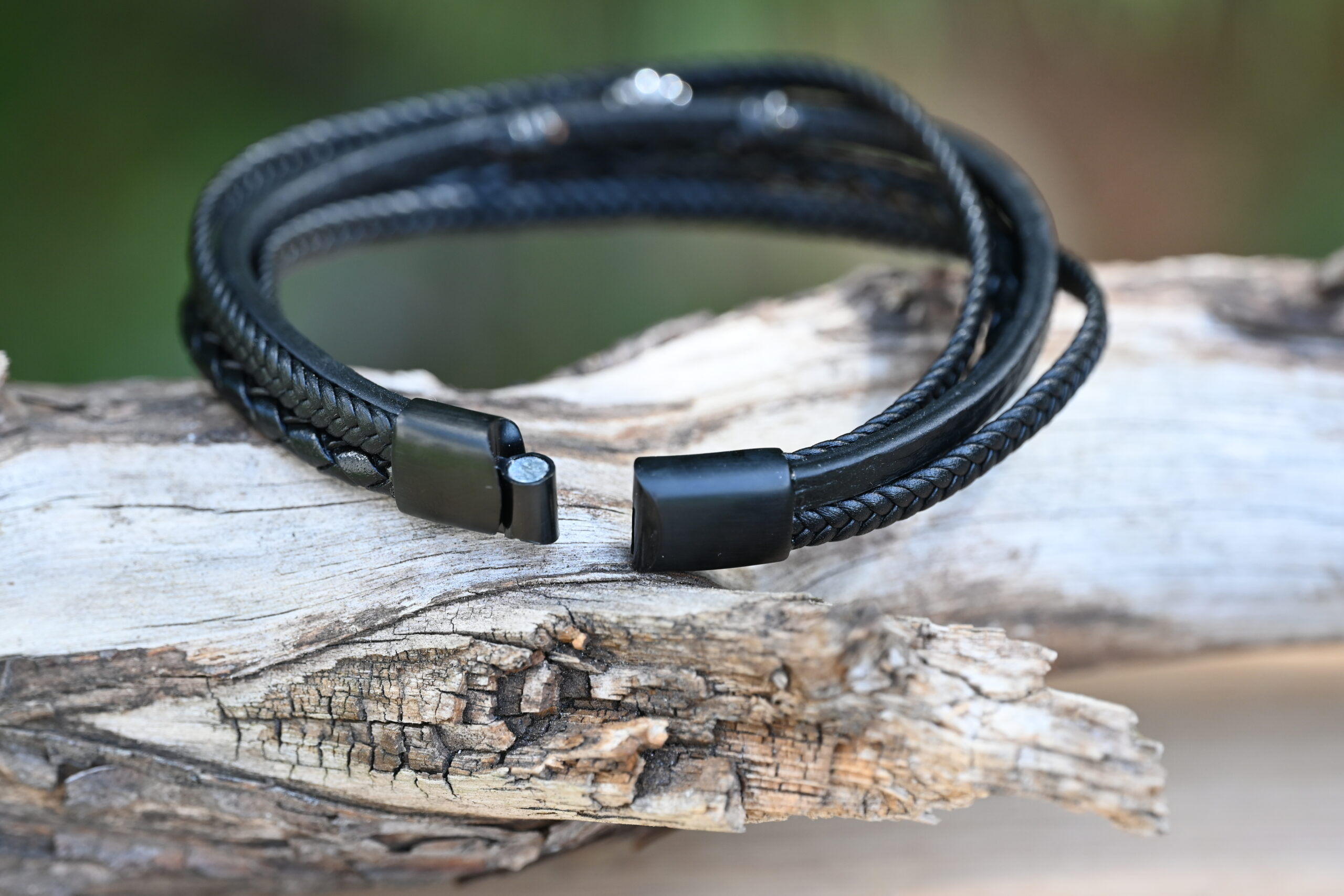 Meeste käevõru punutud nahaga ja tugeva roostevabast terasest kinnitusega. Vastupidav, niiskuskindel ning sobib ideaalselt igapäevaseks kandmiseks.