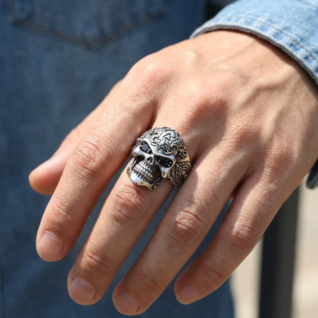 Hilpharakas Meeste 925 Hõbesõrmus “Ornate Skull”