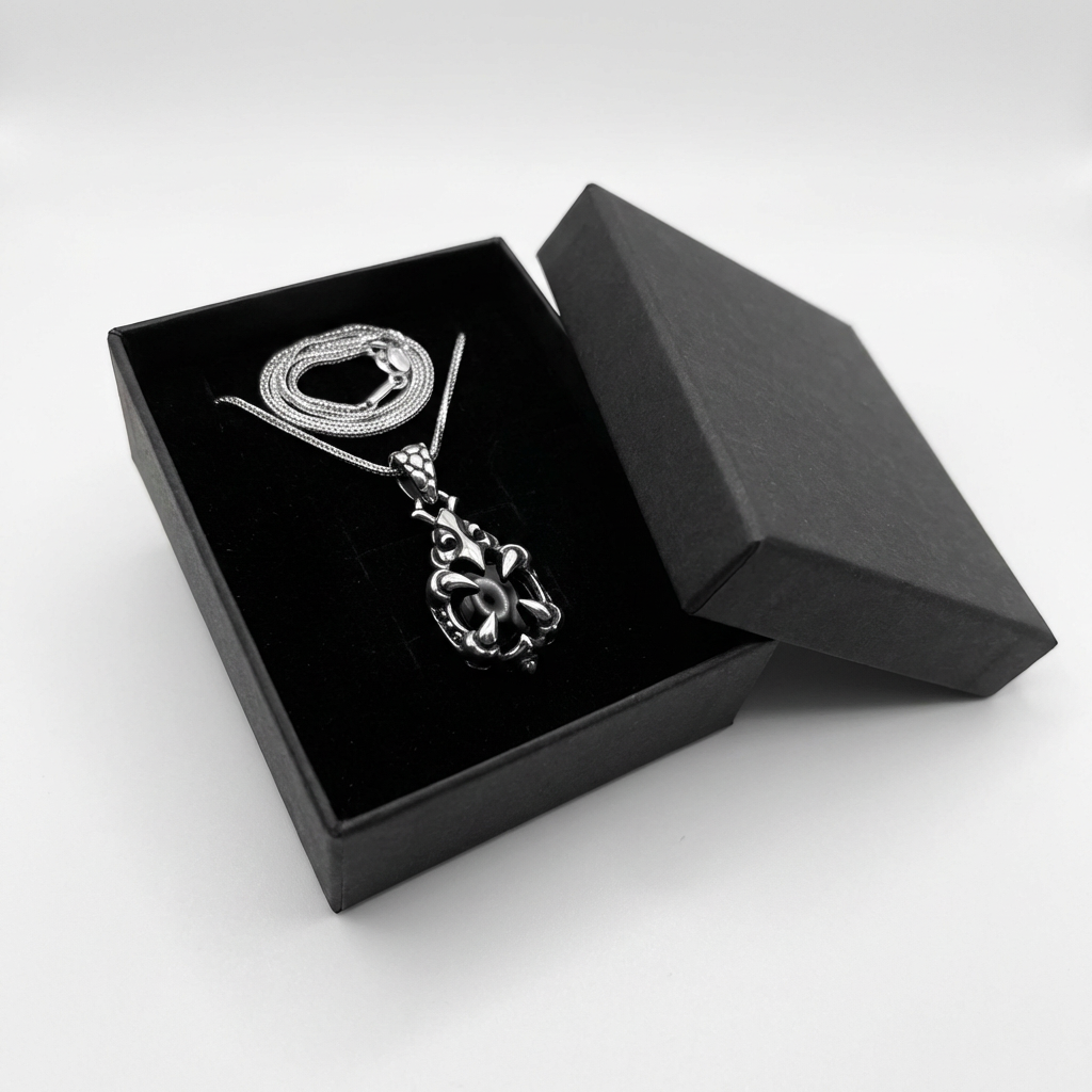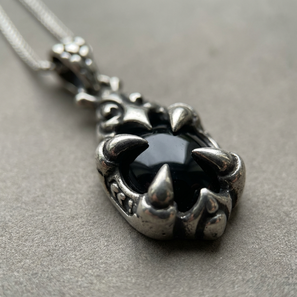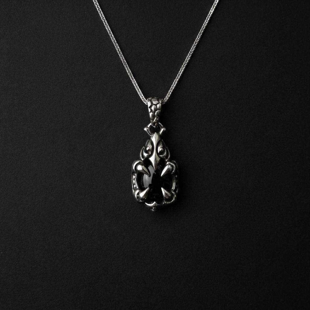 See kaelakee on valmistatud vastupidavast roostevabast terasest. Ripats kujutab detailset küüniste kinnitust, mis hoiab musta onüksi kivi. See on roostekindel, niiskuskindel, higikindel ja hüpoallergeenne. Vastupidav igapäevaseks kandmiseks, ei tuhmu ega jäta nahale rohelist värvi. Mugav kanda ja sobib ka tundlikule nahale.