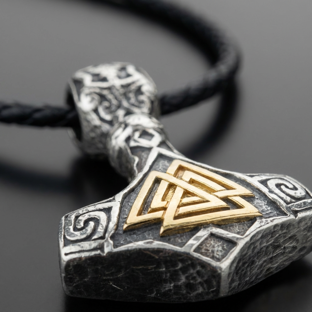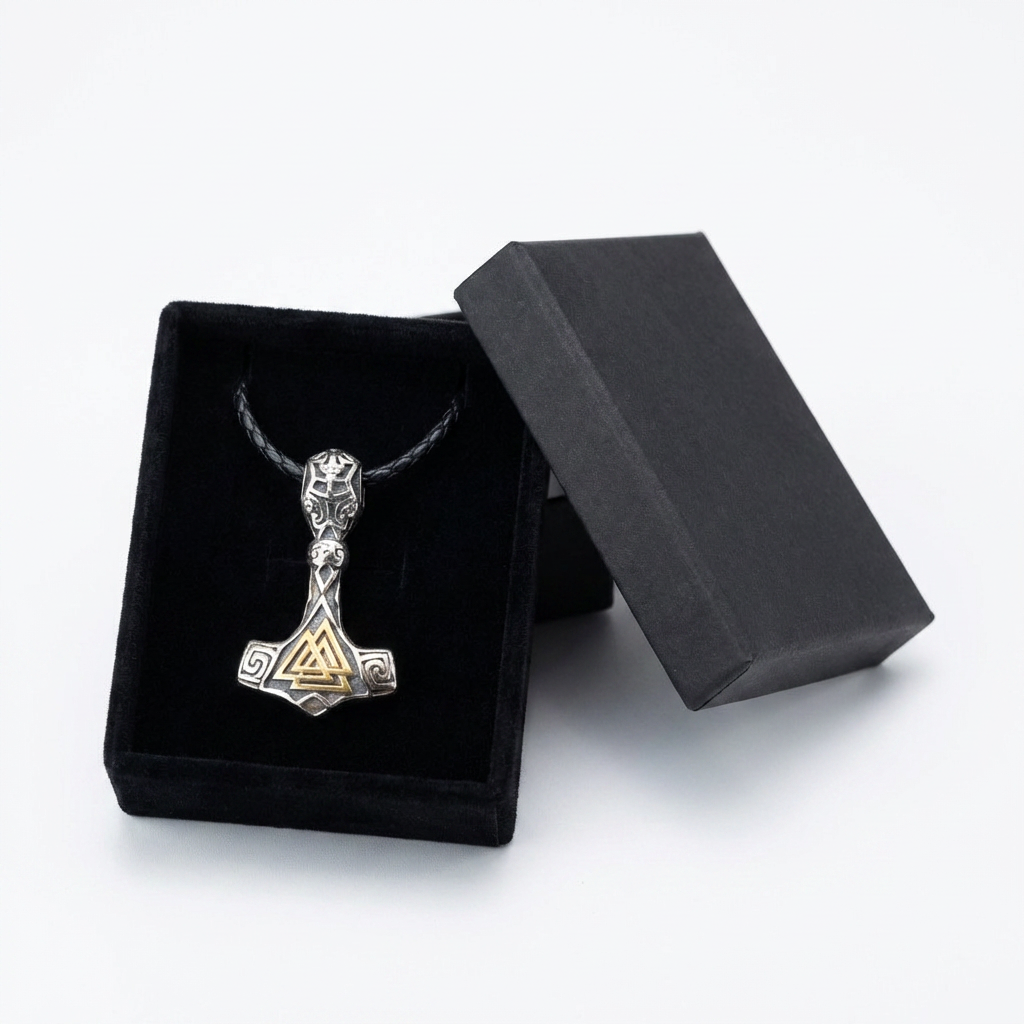 Mjölniri ripats kannab keskel kuldse viimistlusega Valknuti sümbolit ja külgedel spiraalimotiive. See on roostekindel, niiskuskindel, higikindel ja hüpoallergeenne. Vastupidav igapäevaseks kandmiseks, ei tuhmu ega jäta nahale rohelist värvi. Mugav kanda ja sobib ka tundlikule nahale.