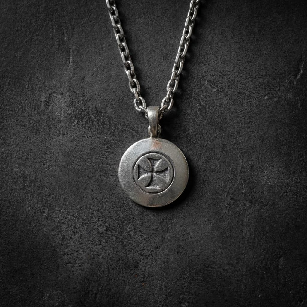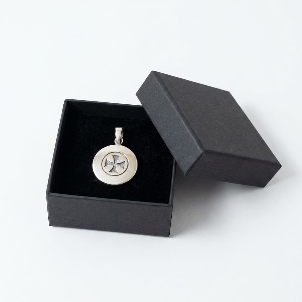 Valmistatud täishõbedast 925. Ümmargune medaljonkujuline ripats kannab keskmes süvistatud raudristi – klassikaline ja minimalistlik disain.