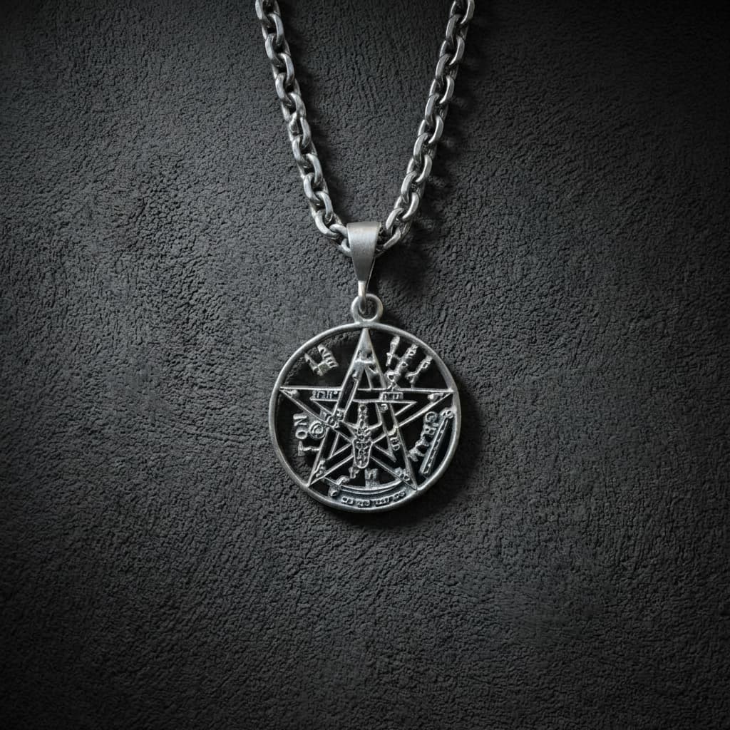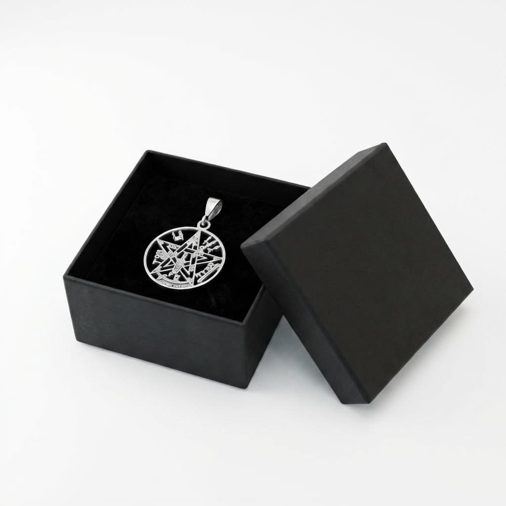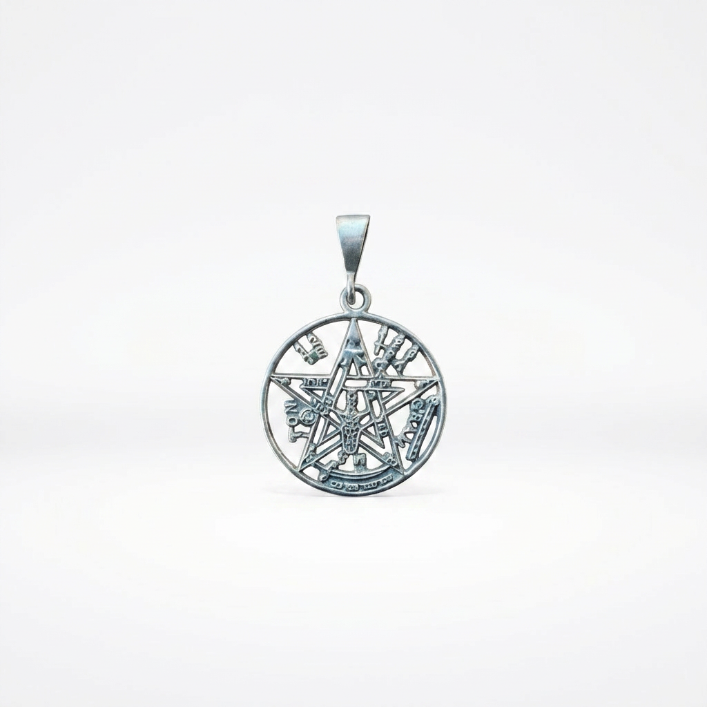 Valmistatud täishõbedast 925. Tetragrammaton on okultistlik sümbol, mis ühendab pentagrammi, heebrea kirjamärgid ja muud esoteerilised elemendid üheks tihedaks kompositsiooniks.